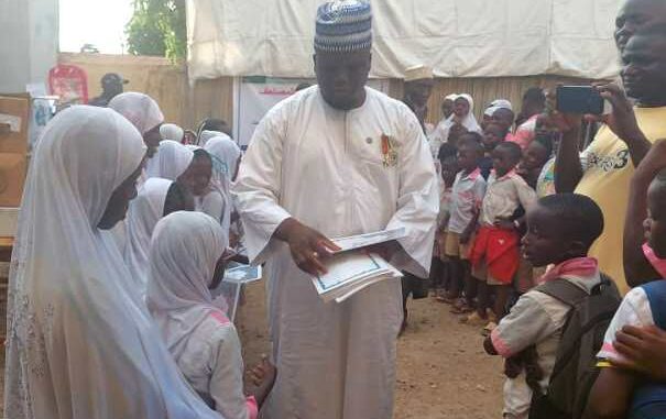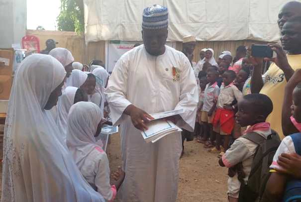 Le président de ORINAH remettant le livre Saint du coran aux élèves du complexe