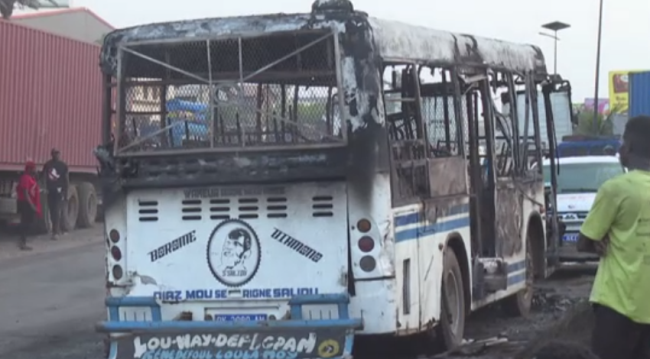 Selon les déclarations du chauffeur, d’un responsable de la compagnie et du ministre, le bus qui roulait mardi en direction du centre de Dakar en provenance de la banlieue s’est retrouvé bloqué par un groupe d’individus descendus d’un pont dans un quartier populaire périphérique de la capitale.