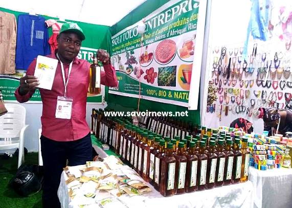 Un petit tour sur le site et plus précisément dans les différents Pavillons, l’un des exposants maliens a attiré notre attention : Amadou Guindo, promoteur de Suigi Tolo Industrie). Dans son stand, sont exposés plusieurs produits tous particuliers, notamment des produits locaux transformés en huiles essentielles et aussi en huiles végétales comme les huiles de Baobab, de Bissap, de Moringa, de Sésame, de Neem, de Ricin, Raisin d’Afrique, d’Aloe Vera et de Balanites.
