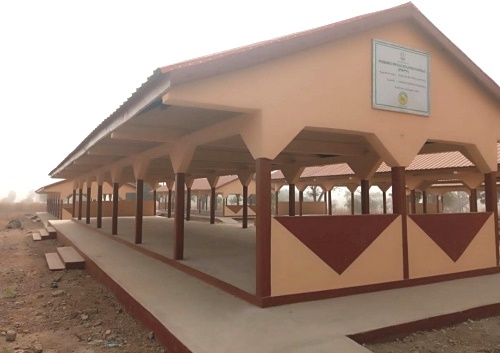 D’un coût global de plus de 100 millions de F.CFA, le nouveau marché est constitué de hangars de type cantonal, de magasins de stockage et d’ouvrages connexes (forage photovoltaïque, dépotoir).