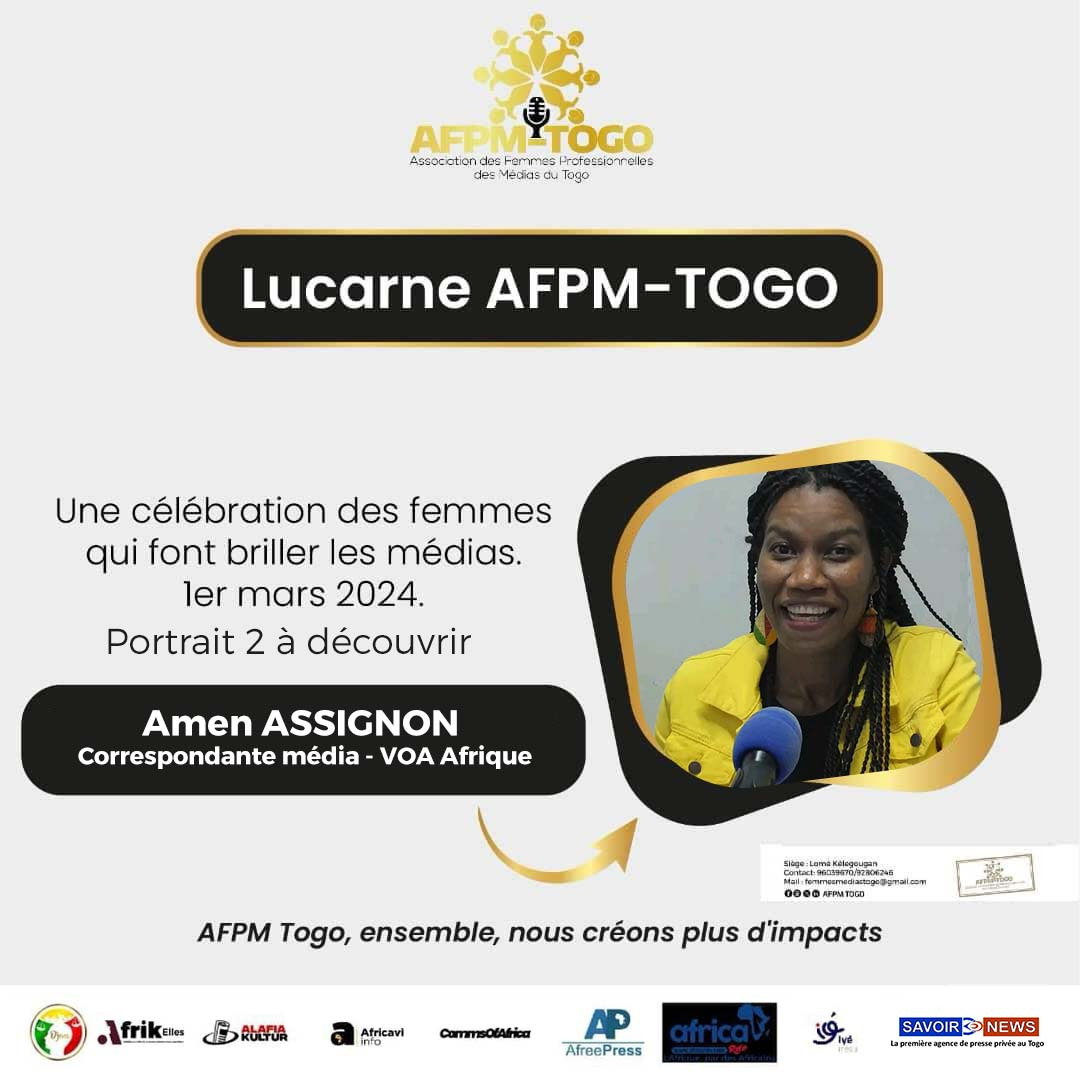 Amen Assignon pour VOA-Afrique Lomé, deviendra-t-elle la version féminine de l’incontournable « Alain Foka » ? Au sein de l’Association des Femmes Professionnelles des Médias du Togo, c’est notre fort souhait !