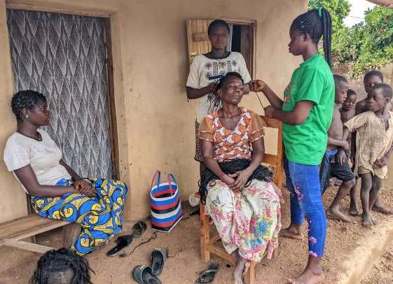 Dans ce village, plusieurs témoignages ont retenu l’attention de l’équipe, dont celui de Mme Tonou Hodalo. Mère de deux enfants et Coiffeuse de profession à Bouladè Lamba, Hodalo s’est fait un chemin en réalisant son principal rêve, celui d’ouvrir son salon, grâce aux transferts monétaire et aux mesures d’inclusion économique du projet FA FSB : « Grâce au double soutien de l’ANADEB à travers le projet Filets sociaux et services de base, ma vie a changé positivement. Dans notre village, nous avons bénéficié de deux sortes de soutiens. A la base, l’un était destiné aux besoins du ménage et l’autre pour entreprendre. Ayant hâte d’atteindre mon objectif, j’ai pris le risque de convertir les deux fonds soit 190.000 francs CFA pour achever la construction de mon salon et l’équiper. Depuis Décembre, j’ai alors commencé par travailler désormais à mon propre compte entant que coiffeuse. D’une manière ou d’une autre chaque bénéficiaire dans ce village a renforcé son potentiel économique. Je tiens à dire merci au projet. Moi j’ai pu tirer mon épingle du jeu et je souhaite que de telles œuvres se multiplient afin que ceux qui pour des raisons de santé ou d’autres situations plus compliquées n’ont pas pu entreprendre, puisse se relever ».