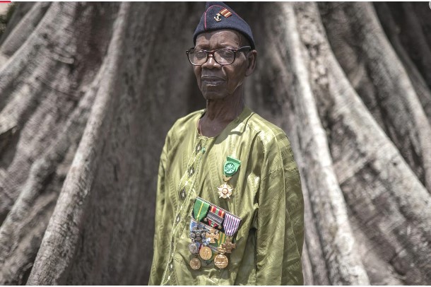 Elégant dans son boubou vert olive, médailles et décorations sur la poitrine, Oumar Diémé songe à ceux qui ont porté l’uniforme français lors des deux Guerres mondiales ou, comme lui, en Indochine et en Algérie, et qui ne sont pas revenus. « Beaucoup de collègues (y) sont restés.