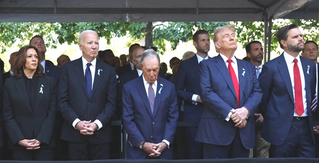 Les candidats à la présidentielle américaine Kamala Harris et Donald Trump, accompagnés du chef de l’Etat sortant Joe Biden, ont affiché mercredi un rare et fragile semblant d’unité à New York pour la cérémonie du souvenir des attentats du 11-Septembre 2001 au lendemain d’un débat plein d’acrimonie.