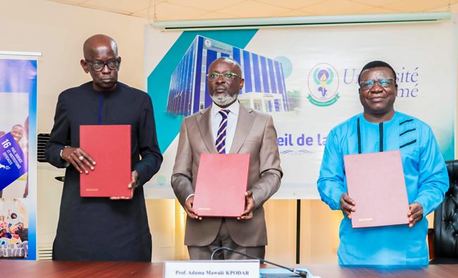 Les documents ont été paraphés par Adama Mawulé Kpodar (président de l’Université de Lomé), Kokou Tcharié (président de l’Université de Kara) et Abdou Dieng (Coordonnateur Résident par intérim du système des Nations Unies au Togo).
