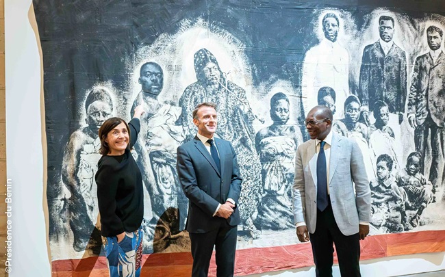 Patrice Talon, président de la République du Bénin et son homologue français Emmanuel Macron étaient aux premières loges au vernissage de cette exposition qui se déroule jusqu’au 5 janvier prochain.