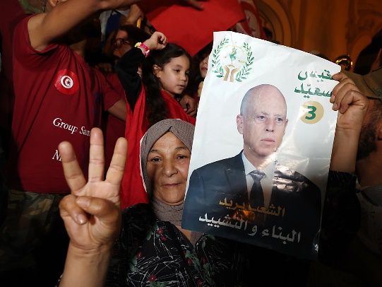 Après l’annonce des sondages, environ 400 partisans du président sont sortis fêter sa victoire, brandissant des drapeaux devant le théâtre municipal au centre de Tunis, en scandant « le peuple veut Kais de nouveau ».