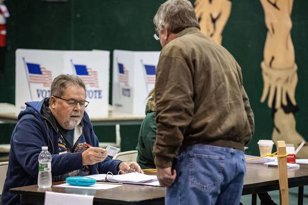 Un électeur américain dans un centre de vote au New Hampshire, le 5 novembre 2024