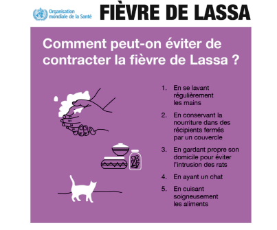 Il invite à adopter certains comportements pour éviter la maladie, dont le lavage régulier des mains à l’eau et au savon, éviter tout contact avec le sang, les selles, les urines, la salive, les vomissures et autres liquides biologiques d’une personne suspecte, bien cuire les aliments, les mettre à l’abri des rongeurs et renforcer la propreté.