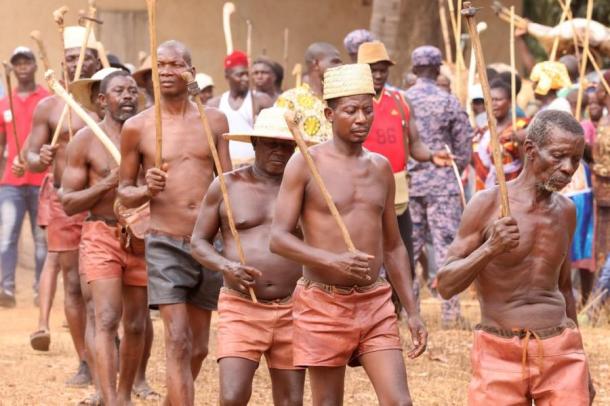 Les chasseurs issus de différents cantons, munis d’outils traditionnels de chasse, exhibant les produits de chasse, ont à travers des prestations de danses et de chants, loué la bravoure, la ténacité, l’endurance et l’habileté des jeunes et adultes qui fièrement, prennent part à cette partie. Ils ont exprimé leur reconnaissance à Dieu et aux mânes des ancêtres pour l’abondance des récoltes.