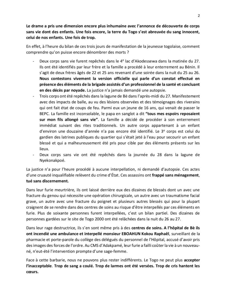 Ces manifestations ont été lancées sur des réseaux sociaux par des influenceurs. Ces organisations ont fait état de sept morts : deux corps sans vie furent repêchés dans le 4e lac d’Akodessewa dans la matinée du 27, trois corps ont été repêchés dans la lagune de Bè dans l’après-midi du 27 et deux corps sans vie ont été repêchés dans la journée du 28 dans la lagune de Nyekonakpoé.