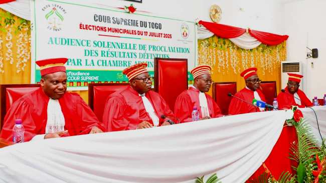 La chambre administrative de la Cour suprême a proclamé ce mercredi 6 août 2025, les résultats définitifs des élections municipales du 17 juillet au Togo.