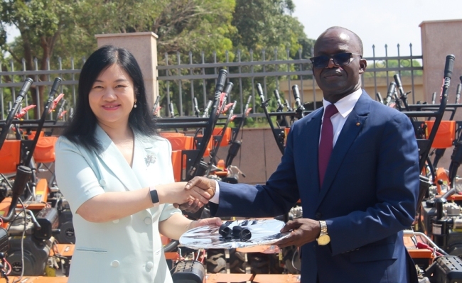 Ce lot d’équipements agricoles remis par l’ambassadrice de Chine au Togo, Wang Min au directeur de cabinet du ministère de l’agriculture, Konlani Dindiogue, est composé notamment de motoculteurs et leurs accessoires, appelés à transformer durablement les pratiques culturales dans la région.