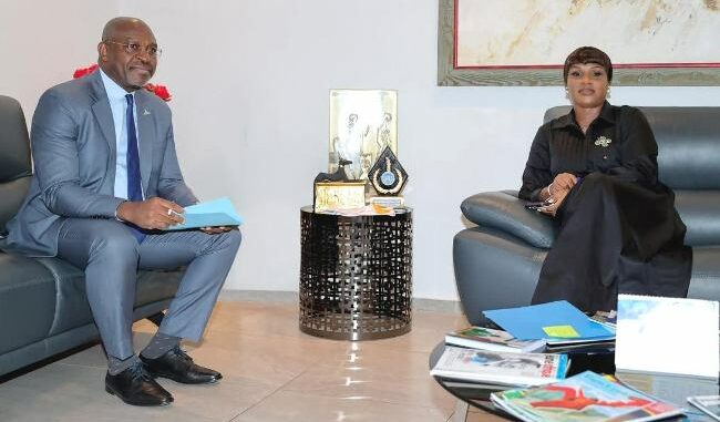 Mme Sandra Ablamba Johnson, ministre et secrétaire générale de la présidence du Conseil a reçu en audience le mardi 13 janvier 2026 à Lomé, Paul-Henri Nguema Meye, Directeur Général de l’Observatoire économique et statistique d’Afrique subsaharienne (AFRISTAT).