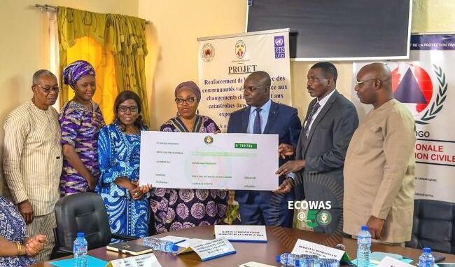 La remise officielle du chèque a été faite le lundi 26 janvier 2026 par Mme Deweh Emily (Représentante Résidente de la Cédéao au Togo) et Dr Sintiki Tarfa-Ugbe (Directrice des Affaires humanitaires et sociales de la Cédéao) au ministre togolais en charge de la sécurité et de la protection civile, représenté par le commissaire Hodabalo-Pitemnèwè Kadja et le directeur général de l’Agence nationale de protection civile (ANPC), le lieutenant-colonel Yoma Baka.